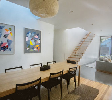 '“The goal was to design a comfortable home for entertaining with a contemporary and youthful vibe,” Jen explains. The 2,300 square foot home became defined by its clean lines and modern aesthetic, but its sensitive siting and attention to detail yield a home that is exceptional for its poise and modesty, making it the unassuming stand-out of the block.'